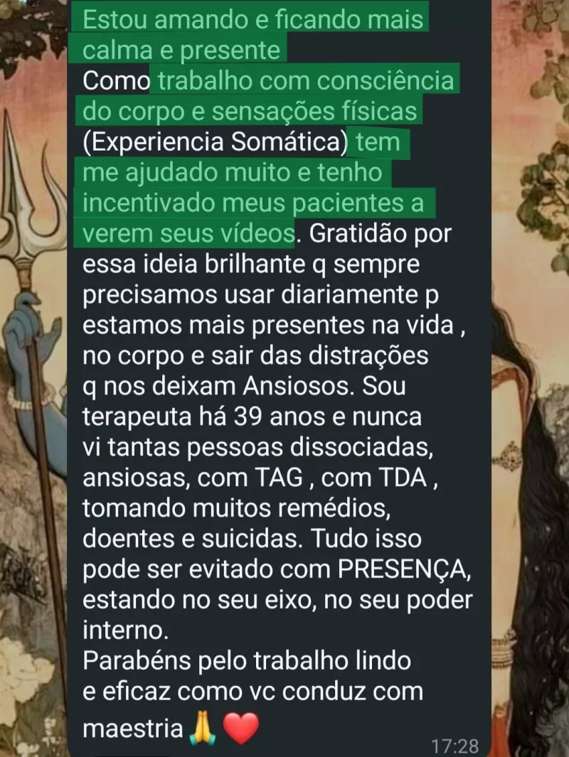 Mais que um curso, é um sistema de autodesenvolvimento, projetado para que você aprenda a se conduzir com autonomia da ansiedade ao equilíbrio, da agitação mental à clareza, com resultados perceptíveis desde as primeiras práticas.
