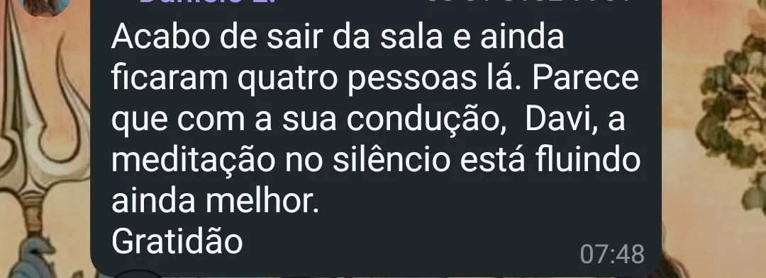Empresário, tinha a mente muito acelerada e está mais concentrado. Era cético quanto aos resultados de meditar, hoje aplica as técnicas no seu dia a dia e se sente mais em paz