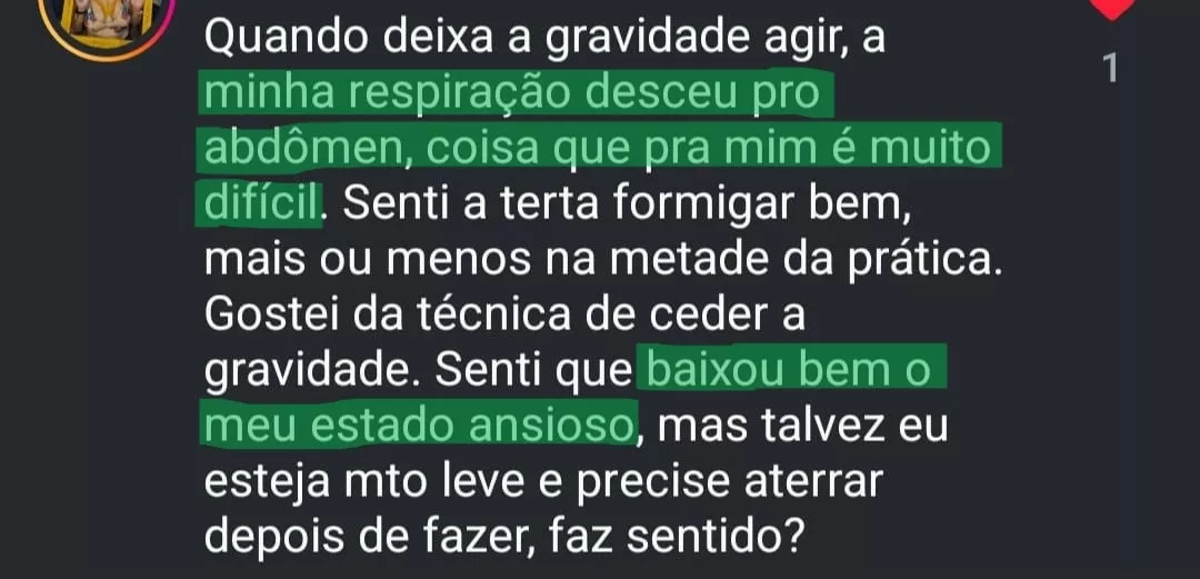 Respiração relaxou e ansiedade diminuiu